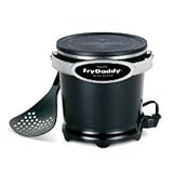 Delicious deep fried foods, fast and easy! Ideal for a family.Makes four big servings with just four cups of oil.Maintains perfect frying temperature automatically.Handy scoop lifts, drains, and serves.Nonstick surface, inside and out, for easy cleaning.Snap-on lid lets you store oil to use again and again.